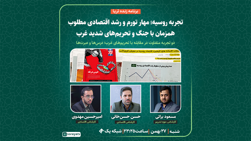 تجربه روسیه؛ مهار تورم و رشد اقتصادی مطلوب، همزمان با جنگ و تحریمهای شدید غرب برنامه زنده ثریا شنبه ۲۷ بهمن ۱۴۰۳ شنبه 27 بهمن 1403 ادامه...