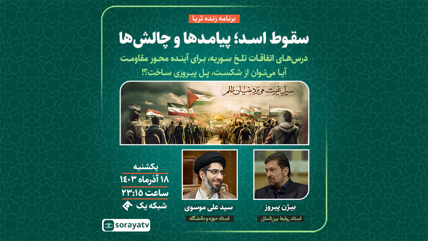 تحولات منطقه و رسالت تاریخی محور مقاومت و ایران برنامه زنده ثریا یکشنبه 11 آآذرماه 1403 دو شنبه 12 آذر 1403 ادامه...